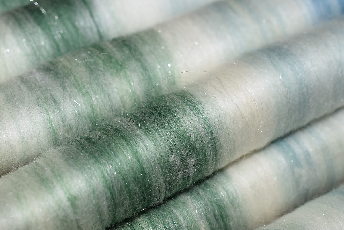 Innehåller mest merino men även lite silke, angora och ev. andra fibrer.